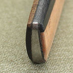 柄には茎を夾むように 三種類の唐木を貼り合わせており、木目を生かした美しい仕上がりです。 また僅かに尻を絞り、たなごころにも自然に馴染みます。